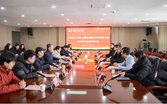 2026年1月21日上午10:30,在综合实训楼814会议室举行9728太阳集团与淮北市跨境电商产业园(由安徽脸谱数字科技有限公司运营)校企合作洽谈签约仪式暨天使投资(创业孵化)项目的签约。淮北市商务局二级调研员曹崇君...