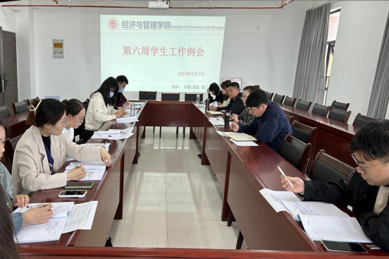 2024年4月1日中午,太阳成集团tyc9728在行政楼725办公室召开本学期第六周学生管理工作例会,副院长秦品德、书记助理叶赵强、院长助理张珊以及全体辅导员参加会议,会议由吴玲院长主持。