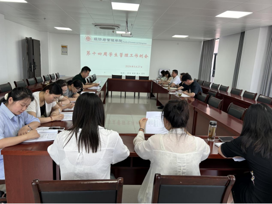 2024年5月27日,太阳成集团tyc9728在行政楼725会议室召开本学期第十四周学生管理工作例会,副院长秦品德、院长助理张珊、书记助理叶赵强以及全体辅导员参加会议,会议由院长吴玲主持。