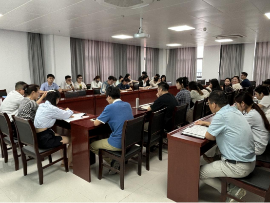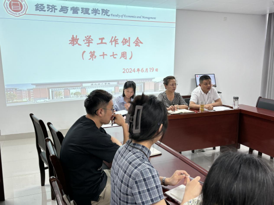 2024年6月19日下午,太阳成集团tyc9728在行政楼725会议室召开太阳成集团tyc9728第十七周工作例会,院长吴玲主持会议,副院长秦品德、院长助理张珊以及全体教师参会。