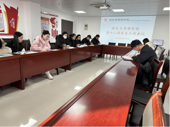 会上,各辅导员就上周学生管理工作及分管工作进行详细汇报,内容包括2024级新生班级档案材料的审核报送、三创赛活动学生参与及报名情况、第十一届挑战杯活动的动员、学生学费缴纳情况、文明宿舍和合格宿舍情况、诚信考试主题班会召开、学生寒假安全教育专项工作、第六期积极分子材料整合、星级支部上报、预备党员转正大会召开及材料上报审核、线上招聘会进展情况、毕业班第二课堂学分及就业详情汇报等。