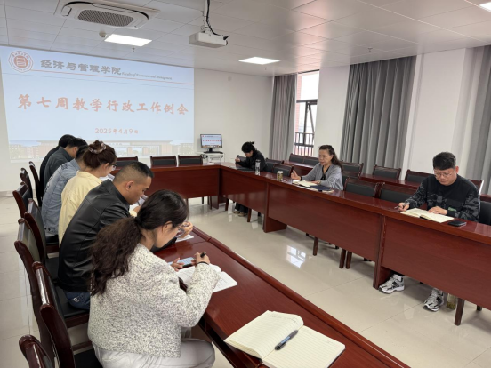 2025年4月9日,太阳成集团tyc9728在行政楼725召开第七周行政工作例会,院长吴玲、院长助理张珊、叶赵强实训室主任李健及各教研室主任出席会议。