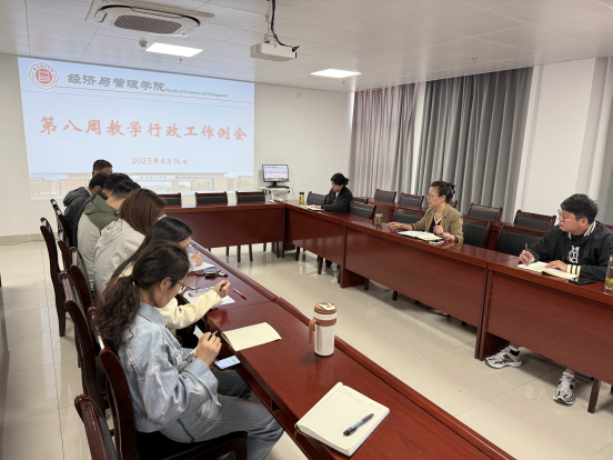 2025年4月16日,太阳成集团tyc9728在行政楼725召开第八周行政工作例会,院长助理张珊、叶赵强,教学秘书李健及各教研室主任出席会议,会议由院长吴玲主持。
