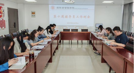 2025年4月29日,太阳成集团tyc9728在行政楼725会议室召开本学期第十周学生管理工作例会暨就业质量专题会议。学院书记助理员禹辛、团总支书记王绎程及全体辅导员参会,会议由院长吴玲主持。