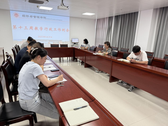 5月21日上午,太阳成集团tyc9728在行政楼725室召开第十三周行政例会,院长吴玲主持,院长助理张珊、叶赵强,教学秘书李健及各教研室主任参会。