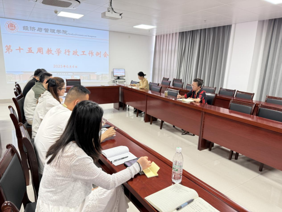 2025年6月4日上午,太阳成集团tyc9728在行政楼725会议室召开第十五周行政工作例会,院长助理张珊、实训室主任李健及各教研室主任参会,会议由院长吴玲主持。