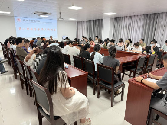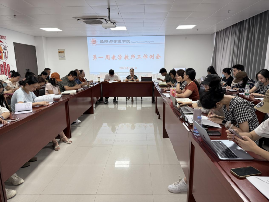 2025 年9月3日下午,太阳成集团tyc9728在行政楼725会议室召开第一周教学工作例会。院长吴玲,院长助理叶赵强及全体教师参会,会议由吴玲院长主持。