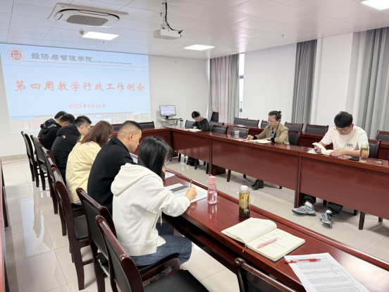 2025 年 9 月24日上午,太阳成集团tyc9728在行政楼725 会议室召开第四周教学行政工作例会。院长吴玲主持会议,院长助理张珊、叶赵强,教学秘书李健,各教研室主任及相关行政人员参会。