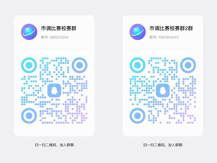 2.网上报名后,请务必在10月26日前加入我校市调比赛QQ群:895572014(市调比赛校赛群)、1061354243(市调比赛校赛群2群,如QQ群895572014已满员,再加本群)。