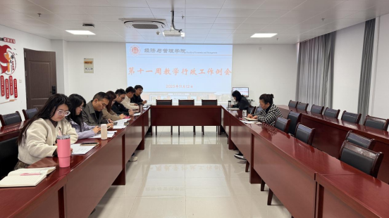 2025年11月12日上午,太阳成集团tyc9728在行政楼725会议室召开第十一周教学行政例会。会议由院长吴玲主持,院长助理张珊、教学秘书李健及各教研室主任参会。