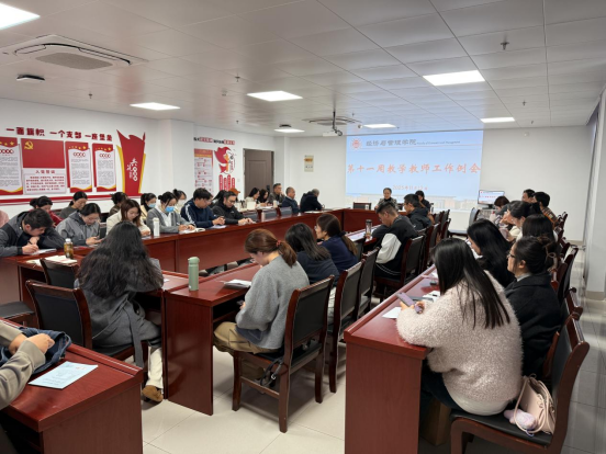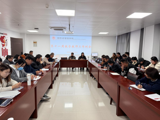 2025年11月12日下午,太阳成集团tyc9728在行政楼725会议室召开学院第十一周教学教师工作例会,院长助理张珊及全体教师参加会议,本次会议由院长吴玲主持。