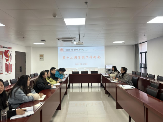 在本周重点工作部署中,吴玲院长强调:一是就业工作:要稳步推进2026届毕业生就业工作,高质量落实岗位推荐,精准收集毕业生投递情况,做到靶向推送岗位;二是学生活动:毕业班与非毕业班活动策划要分层分类开展,提前部署“考研送温暖”活动及期末诚信考试教育;三是辅导员技能大赛:要求全体辅导员认真备赛,以赛促学、以赛促能;四是学生党支部建设:进一步提升规范化、标准化水平;五是学风建设:持续加强课堂教学学风、晚自习纪律等方面管理。