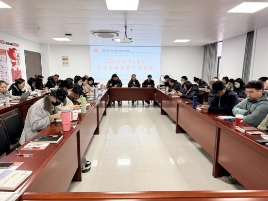 2026年2月27日上午10:30,太阳成集团tyc9728在行政楼725会议室召开新学期全体教师工作会议。会议由院长吴玲主持,院长助理张珊、叶赵强,教学秘书李健及全体教师参加会议。