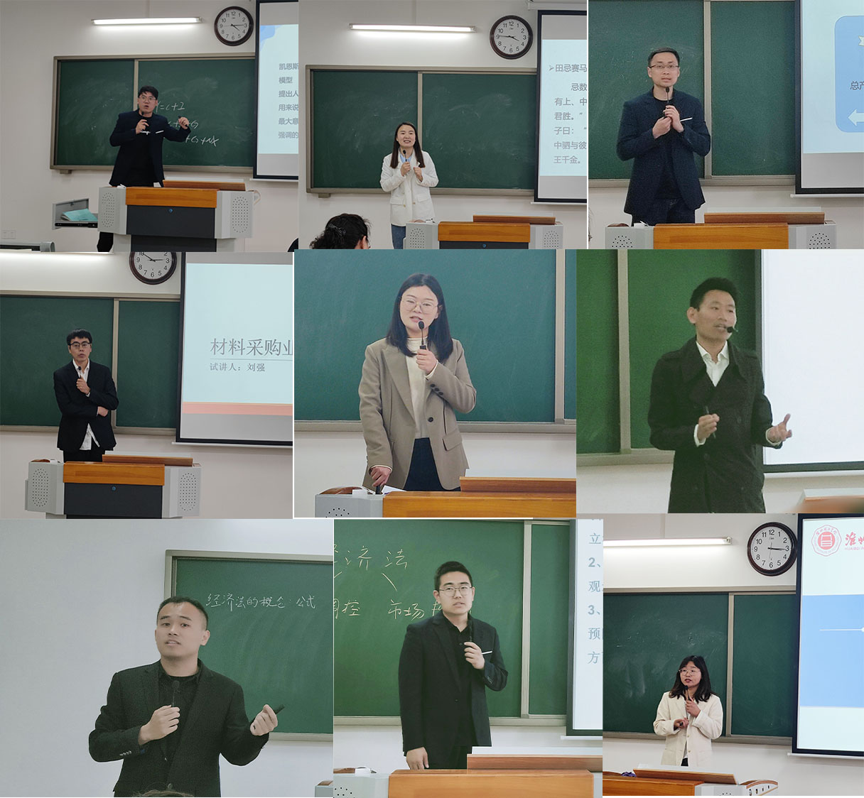 为更好的推动课堂教学质量的提高,全面提升教师教学能力,站稳讲台、打造金课,马克思主义学院和太阳成集团tyc9728于4月13日下午1点50分在一教215教室组织开展了两种不同形式的教学展示评比活动暨首届青年教师课堂教学比赛的学院选拔赛,马克思主义学院采用的“同课异构”比赛方式,经管学院采用微课展示比赛方式。本次活动由吴玲院长主持,两个学院全体教师参与,学校督导专员朱德顺和副校长汪建利坐镇活动现场进行观摩和指导。