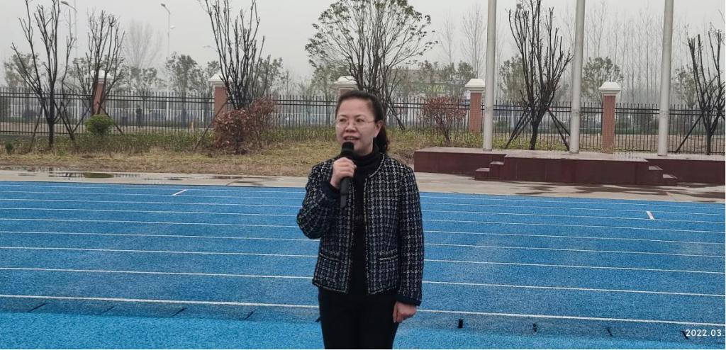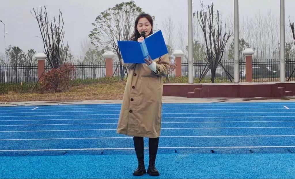 第五个主题篇章:兰露老师作为教师代表发表演讲,主题是“明确目标、奋力前行”,她围绕“雄心、决心、恒心”三个词展开,表明老师们有信心、有耐心、有恒心把每个学生培养成为身心合格的人才;同时希望学生们立下雄心壮志,为自己制定一个个奋斗目标,并朝着既定的目标,持之以恒;希望全体同学充满热情、充满信心地开始新的里程,为9728太阳集团的明天添光增彩。
