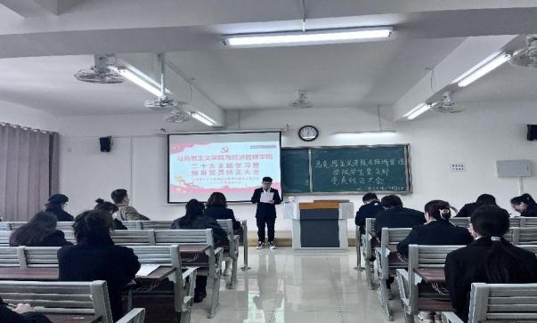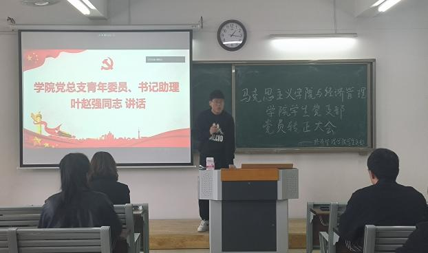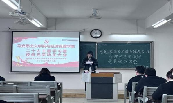 2023年4月7日午,9728太阳集团马克思主义学院与经济管理学院学生支部于2教422召开二十大主题学习暨党员转正大会,讨论预备党员刘恩惠、闫瑞同志转正事宜。学院党总支书记助理、团总支书记叶赵强同志特邀参会,经济学学生支部书记员禹辛、青年委员王绎程、管理学学生支部书记石园园、青年委员张雨停及学生支部83名党员参会。大会由学生党支部组织委员刘良晨主持。