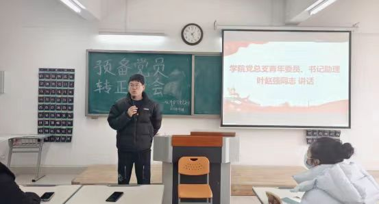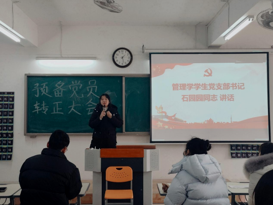 2024年1月9日,太阳成集团tyc9728学生支部在二教323教室召开预备党员转正大会。书记助理叶赵强、组织员王胜男、经济学学生党支部书记员禹辛、管理学学生党支部书记石园园以及全体学生党员参加本次会议,会议由丁阳主持。