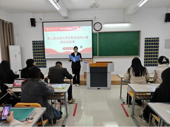 比赛过程中,选手们结合专业特点和自身优势设计自己的职业目标和多角度开展自我评估,从职业认知、职业定位评估与调整以及目标契合度等多个方面阐述了对职业的发展规划,他们思路清晰明确,充分展现大学生朝气蓬勃的精神风貌和职场新人的职业形象。评委老师根据每位选手的专业特点和现实表现,进行详细点评,按照评审标准进行评分。经过激烈角逐,武珍尧、范红玲、韩亚群等10名同学在院级初赛中脱颖而出,获得参加校级比赛的机会。