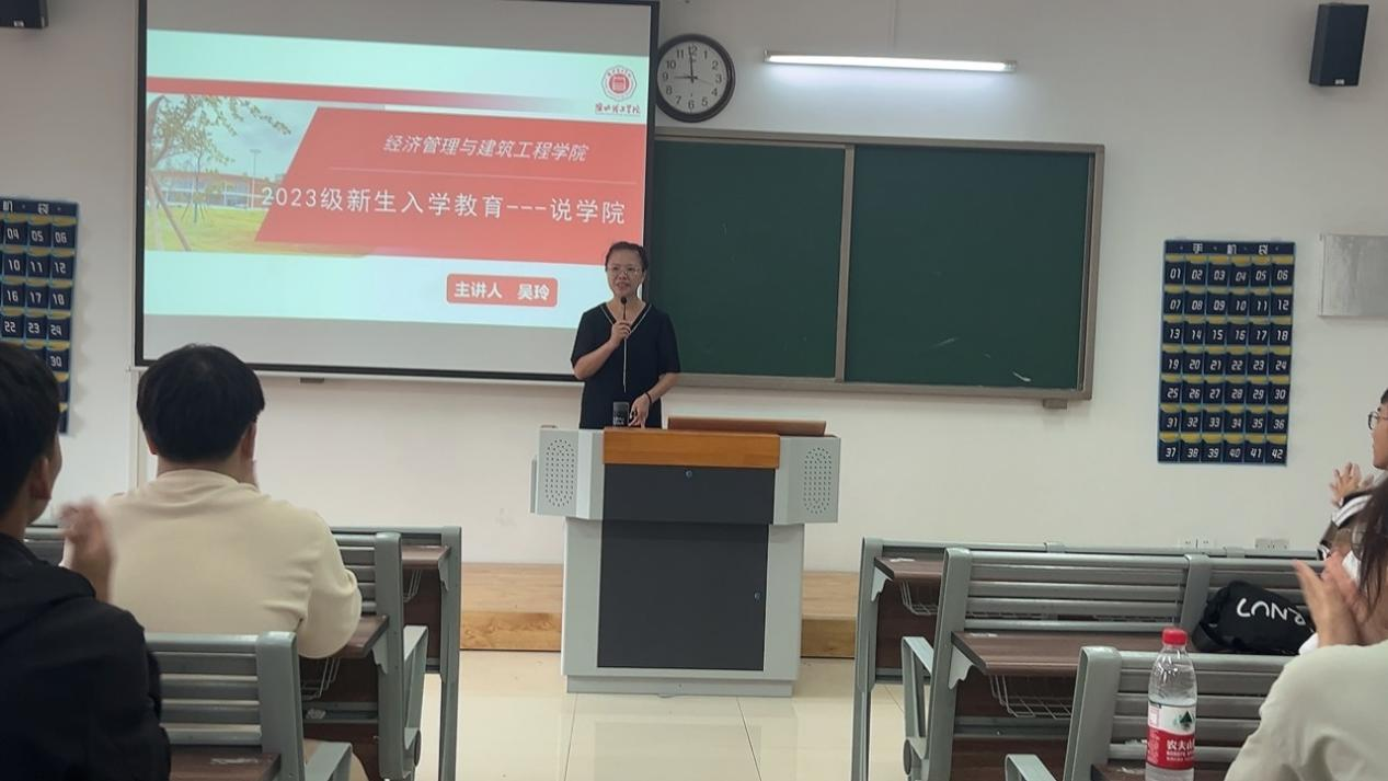 为了帮助2023级新生尽快熟悉学院环境,更好地适应大学生活,快速融入学校和学院,深入了解自己所学专业和就业前景,培养新生集体荣誉意识,争先创优意识。在学院的精心安排下,2023年9月11日全天与9月14日晚上经济管理与建筑工程学院以“说学院、说成长、说专业、说班风学风”为专题分六个专业进行2023级新生入学教育,院长、专业负责人、书记助理以及新生辅导员进行专题主讲,全体2023级新生参加教育活动。