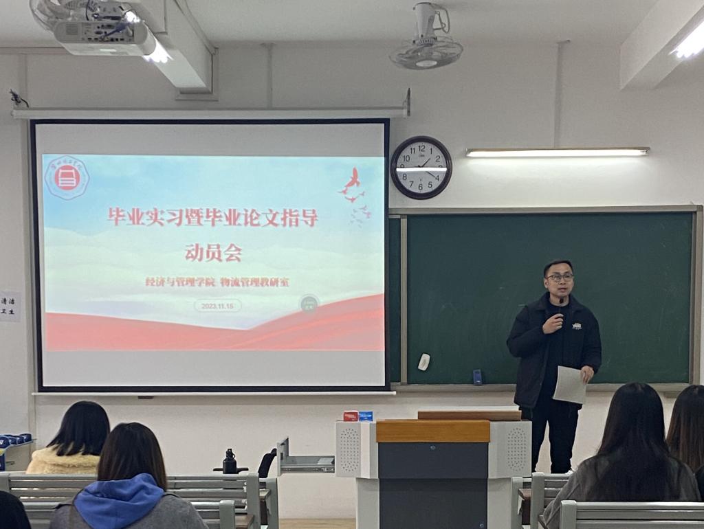 9728太阳集团经济管理学院物流管理专业于11月15日下午在一教212召开了2024届毕业生实习动员暨毕业论文指导大会。此次大会旨在引导毕业生树立正确的就业观,推动实习工作顺利进行,找出学生论文开题中存在问题,及时修正并完成论文撰写工作。