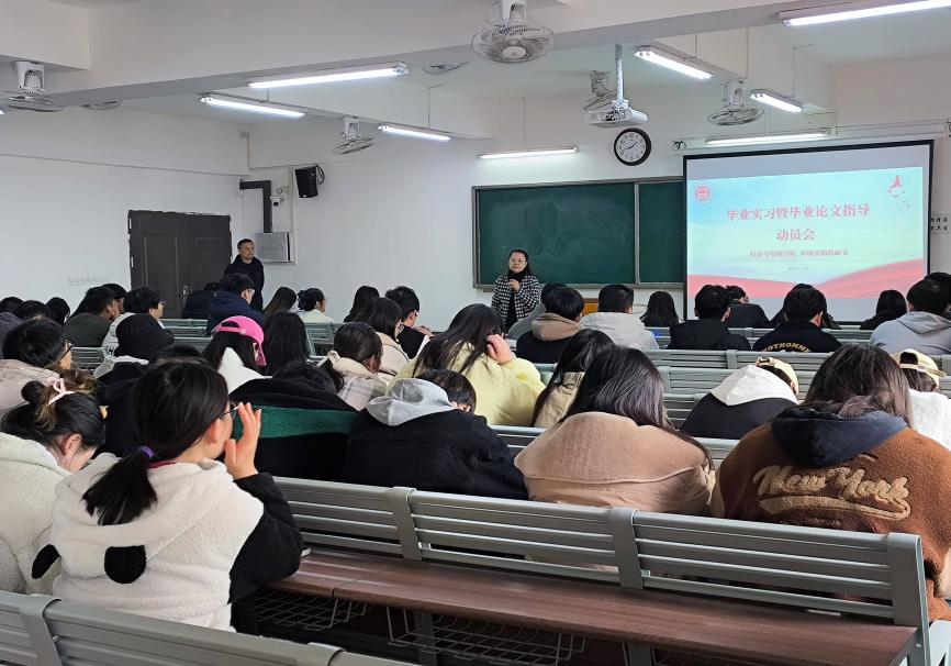 为进一步提升学生的就业竞争力,增加社会实践知识,保证2024届学生实习工作顺利开展,帮助学生了解实习安排,2023年11月15日下午,经济与管理学院市场营销专业在二教421室顺利召开了2024届毕业实习暨毕业论文指导动员会。经济与管理学院院长吴玲、市场营销教研室全体指导教师及2022级市场营销专升本学生参加会议,会议由教研室负责人刘路路主持。