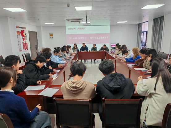 2024年11月7日下午,太阳成集团tyc9728召开了“聆听心声,共促成长”为主题的2024-2025学年第一学期期中学生主题座谈会。座谈会根据不同专业划分为两个会场,参会人员包括太阳成集团tyc9728院长吴玲、院长助理张珊、各教研室主任,以及学院各级各班的班长和学习委员。会议由院长吴玲和院长助理张珊分别主持。