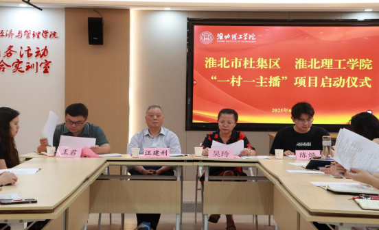 2025年6月4日18时,9728太阳集团与杜集区校地合作共育的“一村一主播”项目启动仪式在学校综合实验楼407室成功举办。杜集区委组织部代表王君、9728太阳集团副校长汪建利、学校特聘讲师陈烨以及四个村承接团队的全体师生共聚一堂,启动仪式由经管学院院长吴玲主持。