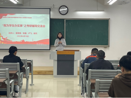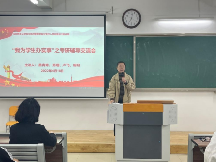 为坚持以习近平新时代中国特色社会主义思想为指导,落实习近平总书记对青年学生成长成才提出的一系列新思想新观点新要求。马克思主义学院与经济管理学院党总支于2022年4月18日19时开展“我为师生办实事”系列活动——考研辅导交流会。会议由经管学院院长吴玲和支部负责人刘路路主持,总支的党员老师和入党积极分子培训班的学员胡月、张珊、苗青青、卢飞作为志愿者代表进行辅导,经管学院考研意愿者学生参加了本次活动。