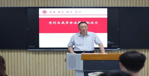 为深入推进学习贯彻习近平新时代中国特色社会主义思想主题教育工作,根据学校主题教育工作安排,6月7日下午,校纪委书记、副校长汪建利到太阳成集团tyc9728教工党支部讲授题为“党的自我革命永葆生机活力”主题教育专题党课。学院党总支书记吴玲、太阳成集团tyc9728教工支部全体教师和管理学学生支部全体学生党员聆听报告,经济管理学院教工支部组织委员邢雨晴主持报告会。