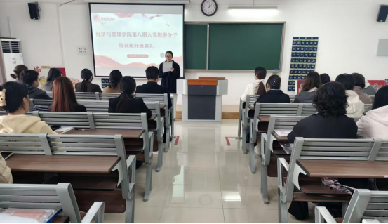 为深入学习贯彻习近平新时代中国特色社会主义思想,落实全面从严治党新要求,严把党员发展“入口关”,2025年11月14日,太阳成集团tyc9728第八期入党积极分子培训班开班典礼在二教322教室隆重举行。管理学和经济学学生党支部书记、青年委员和全体86名入党积极分子共同参加,开班典礼由郑凡主持。