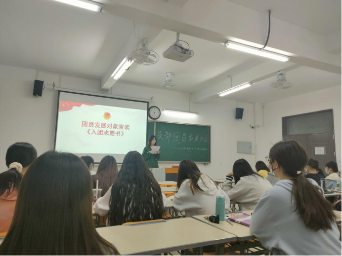 为了确保首次团员发展大会的顺利召开,在此次会议开始之前,吴玲院长和团总支负责人叶赵强对各团支部书记进行了专题的培训和指导,并统一制定了会议严格的流程。要求各支部书记要严格按照程序开展团员发展大会,做好各项工作的记录,做好入团材料的规范。各个支部书记严格执行规程,确保了首次团员发展大会每个环节顺利进行。