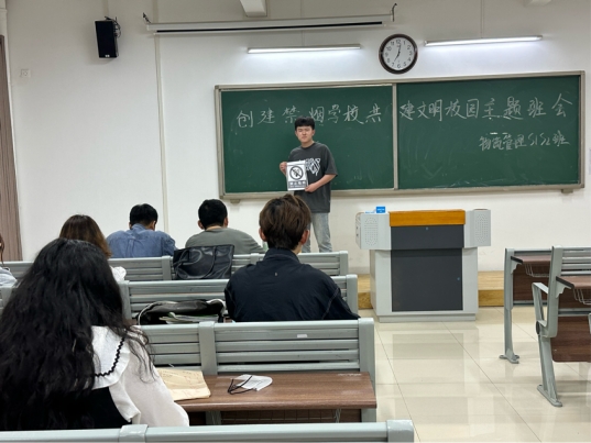 为响应《教育部办公厅卫⽣部办公厅关于进⼀步加强学校控烟⼯作的意见》,号召⼴⼤师⽣⾃觉远离烟草,树⽴和展现我校师⽣良好的精神⾯貌,养成科学健康的⽣活习惯,创造⽂明、洁净、优美的校园环境。我院于4⽉27-5月7日开展了以“创建无烟校园、共建文明学校”为主题的禁烟活动,29个班级参与本次活动。