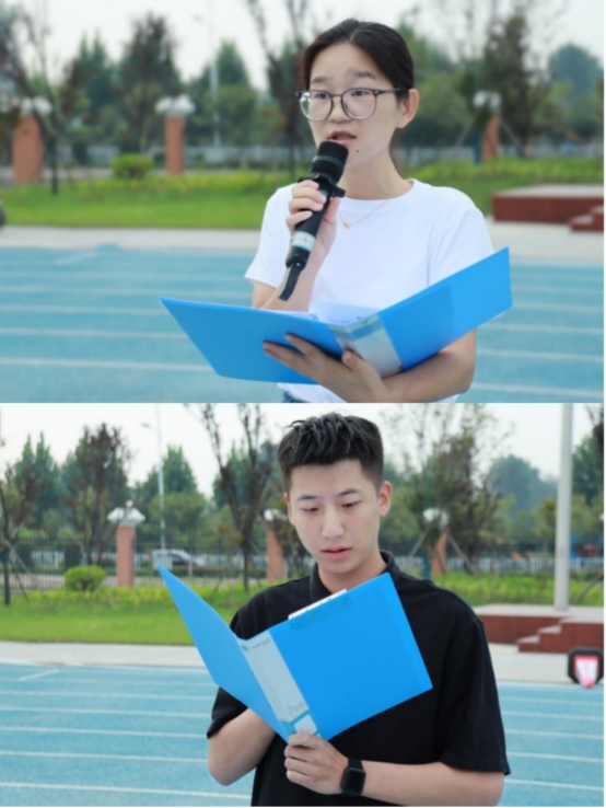 23级王宗元代表新生在进行国旗下做“我与时代共前行”的主题演讲,作为新生也是新时代大学生,需要养成良好的行为习惯,规范自身的言行,树立远大的理想和正确的价值观、人生观,从而来践行我们的责任和使命。