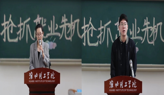2024届毕业班辅导员王绎程老师结合班级情况和学生实际需求对同学们提出建议:要关注就业信息,转变就业理念,降低就业期望值,面向基层就业。2024届毕业生代表井咏琪同学也就就业技能与就业意识两方面畅想自己观点。