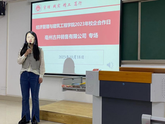 为深入推动与企业间的合作,给学生提供更丰富、更优质的就业资源与就业机会,切实推进2024届毕业生就业工作的进展。10月18日,经济管理与建筑工程学院在一教420开展第一届就业技能大赛之校企合作日活动。本次活动邀请了知名企业三只松鼠股份有限公司和亳州古井销售有限公司,吸引了电子商务、市场营销、经济学、物流管理等专业100余名同学参加。本次活动由邓金鑫、张雨停主持。