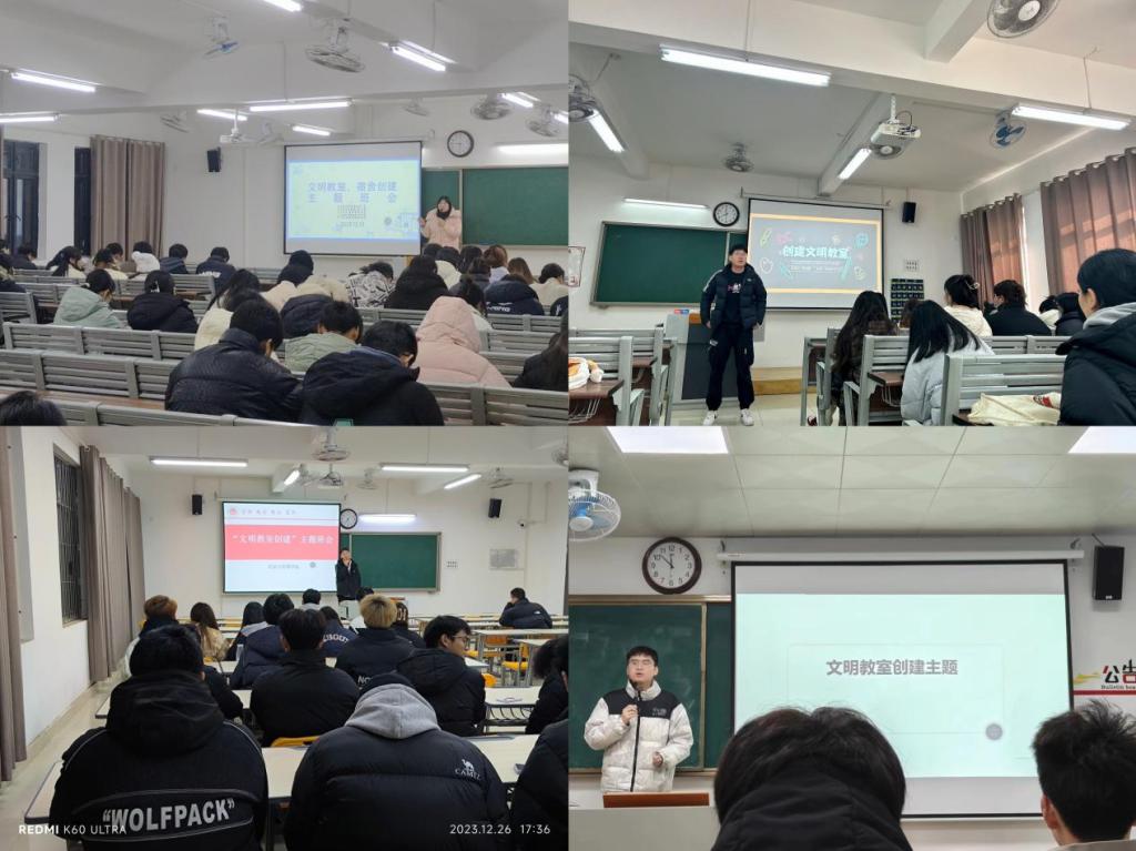 本次文明教室创建活动增强学生集体主义意识,提升学生公德素养,促进学生“德智体美劳”全面发展;同时展现了当代青年大学生的良好风范;也为我院学子创建一个美丽和谐的教室学习环境打下坚实基础。