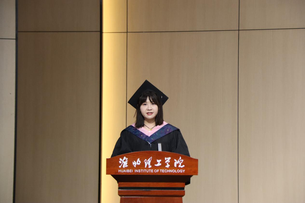 市场营销专业梁诗雨同学代表毕业生发言,回忆了校园生活的丰富多彩,重温了入学以来个人的成长历程,表达了对母校、师长、同学和父母的深深感恩情。