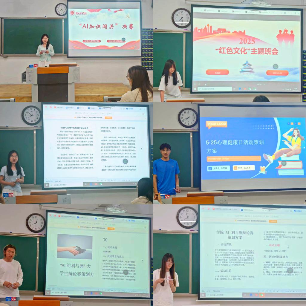 本次“四进四促”之辅导员进第二课堂活动,作为“四进四促”系列活动的重要组成部分,充分发挥了辅导员在第二课堂中的引领作用,通过专业化的指导,不仅深化了师生交流,更有效提升了学生的AI素养与综合能力,为培养适应数字化时代的复合型人才奠定了坚实基础。今后,我院将继续丰富第二课堂活动内容和形式,扎实推进“五育并举”育人体系建设,将其融入到学生的日常管理各环节,推动经管学子德、智、体、美、劳全面发展。