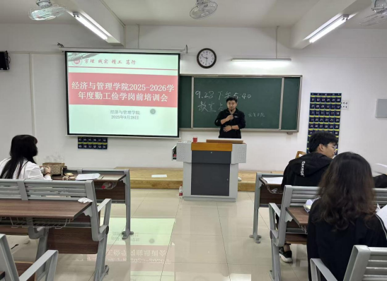 为规范勤工助学岗位管理,帮助学生更好地适应工作角色,太阳成集团tyc9728于9月28日在二教422召开2025-2026学年勤工助学岗前培训会,学院书记助理员禹辛、实验室主任、教学秘书李健、负责勤工助学工作的老师以及66名已录用学生共同参加,会议由院学生会文体部部长汪朱仝主持。