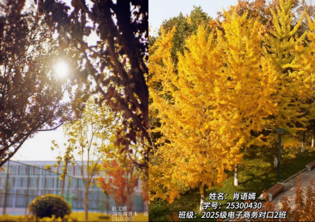 在活动期间,同学们化身“秋日观察员”,穿梭于校园的林荫道、球场旁和教学楼间,用镜头捕捉秋日的灵动景致。无论是风吹叶落的瞬间,阳光穿透枝桠的光影,还是同窗并肩漫步的画面,都被同学们敏锐地捕捉并定格。同时,同学们在作品中详细阐述了灵感来源、拍摄手法和感想,使每一张照片都饱含着对自然的热爱与对生活的感知。