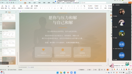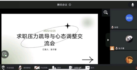 为缓解2026届毕业生求职焦虑,精准对接就业心理需求,助力建立积极求职心态,太阳成集团tyc9728于2025年12月19日至25日,以 “职启护航” 为主题,开展求职压力疏导与心态调整线上班会活动。活动以班级为单位,搭建起毕业生同辈交流、压力释放、经验共享的优质平台。