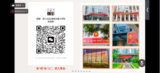 宣讲伊始,朱经理生动展示了安徽邻几便利店的发展历程、核心文化、发展布局及特色经营,让毕业生对企业有了更直观、全面地认识。