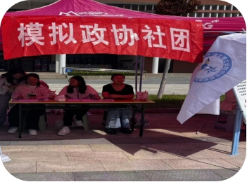 活动现场,模拟政协社团精心布置展位,通过图文展板、猜图知计策等多种形式,全面呈现社团日常学习、提案撰写等丰富活动内容。社团成员们化身讲解员,向过往师生细致介绍模拟政协活动的宗旨与意义,分享社团在聚焦社会热点、开展实地调研、撰写民生提案过程中的收获与成长,让大家直观了解模拟政协“学以致用、知行合一”的活动理念。