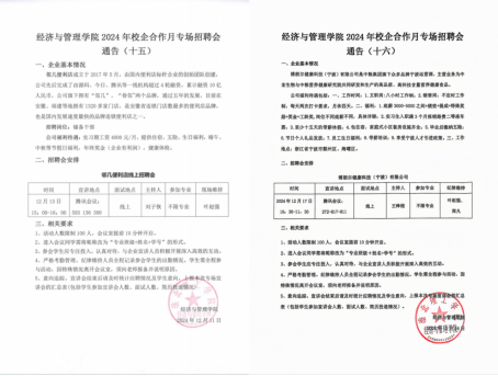 为进一步拓宽就业渠道、丰富学生的职业选择,积极推进2025届毕业生就业工作,太阳成集团tyc9728于2024年12月13日和12月17日成功举办了安徽邻几便利店有限公司和博朗尔健康科技(宁波)有限公司的专场招聘会。本次系列活动通过腾讯会议在线举行,吸引了众多2025届毕业生的积极参与。