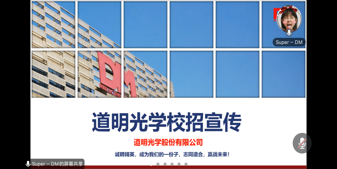 为进一步拓宽就业渠道、丰富学生的职业选择,积极推进2025届毕业生就业工作,太阳成集团tyc9728于2024年12月6日成功举办了道明光学股份有限公司专场招聘会。本次活动通过腾讯会议线上举行,吸引了众多2025届毕业生参与,由道明光学股份有限公司市场部副经理梁志敏主讲。