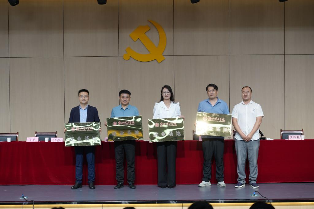 活动最后,副校长郑来纪与四位企业家进行“校企合作基地”授牌仪式,并合影留念。