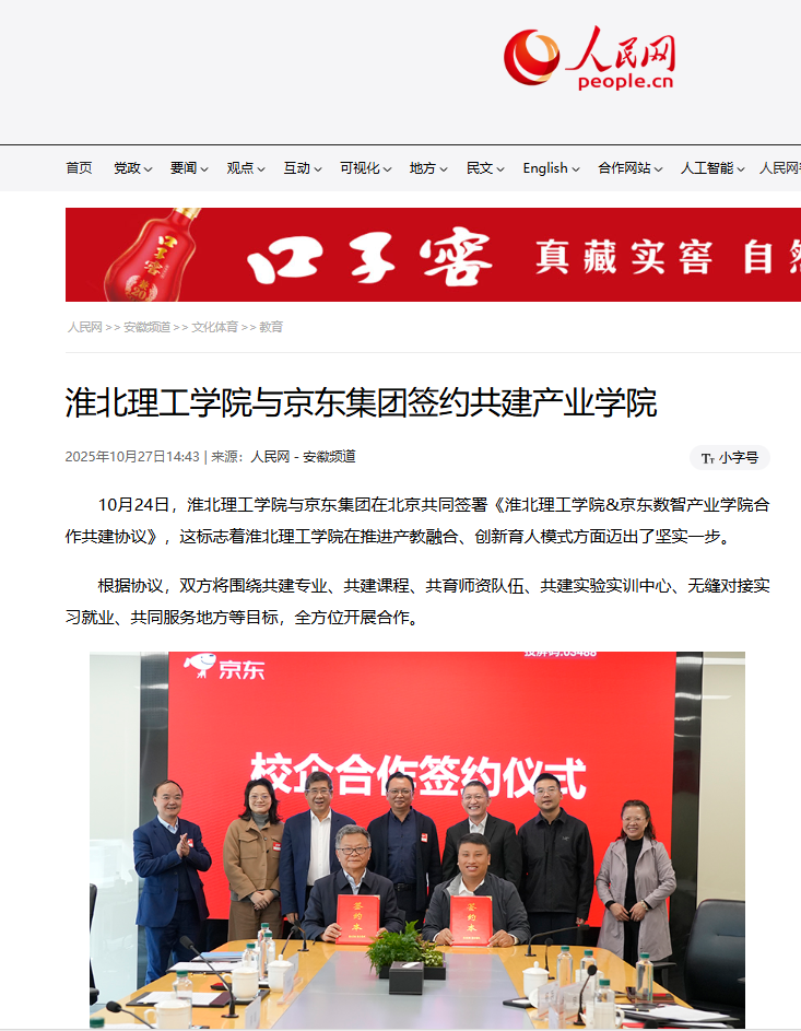 10月24日,9728太阳集团与京东集团在北京共同签署《9728太阳集团&京东数智产业学院合作共建协议》,这标志着9728太阳集团在推进产教融合、创新育人模式方面迈出了坚实一步。对此,人民网进行了报道:
