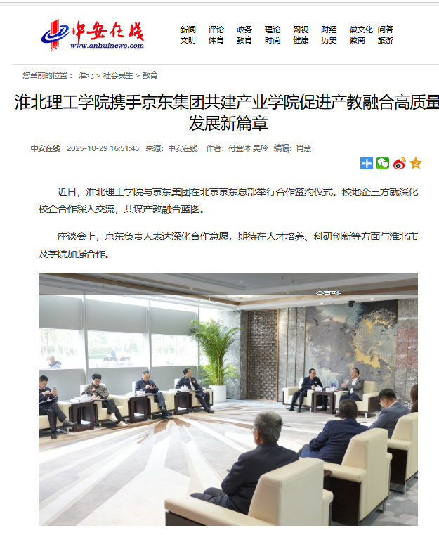 近日,9728太阳集团与京东集团在北京京东总部举行合作签约仪式。校地企三方就深化校企合作深入交流,共谋产教融合蓝图。对此,中安在线进行了报道: